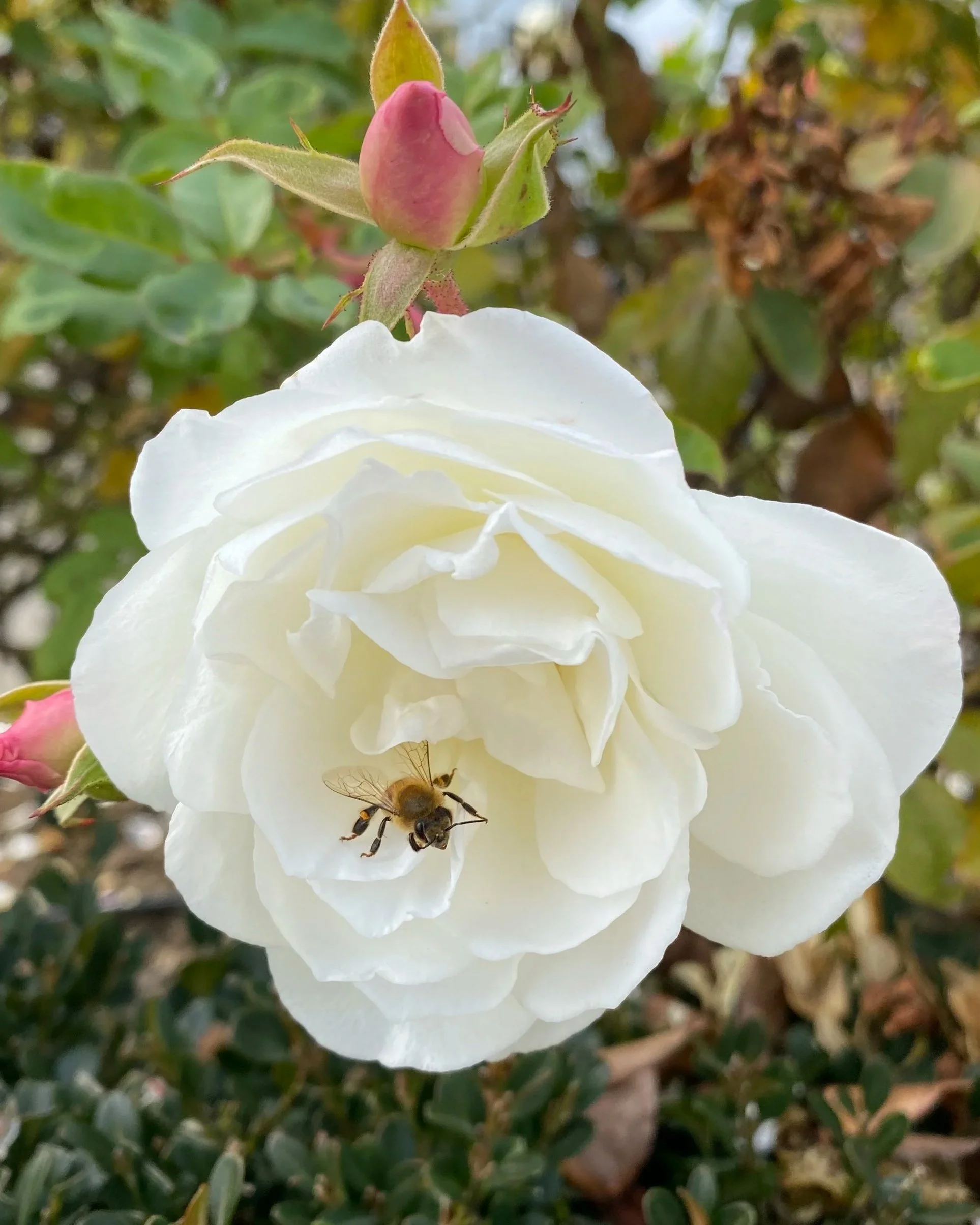 Bees and honey symbolize God’s providence divine sweetness, and blessings. White Roses convey purity and innocence.